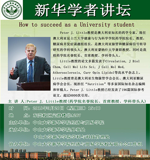 主讲人:Peter J. Little教授(药学院名誉院长、首席教授、学科带头人)