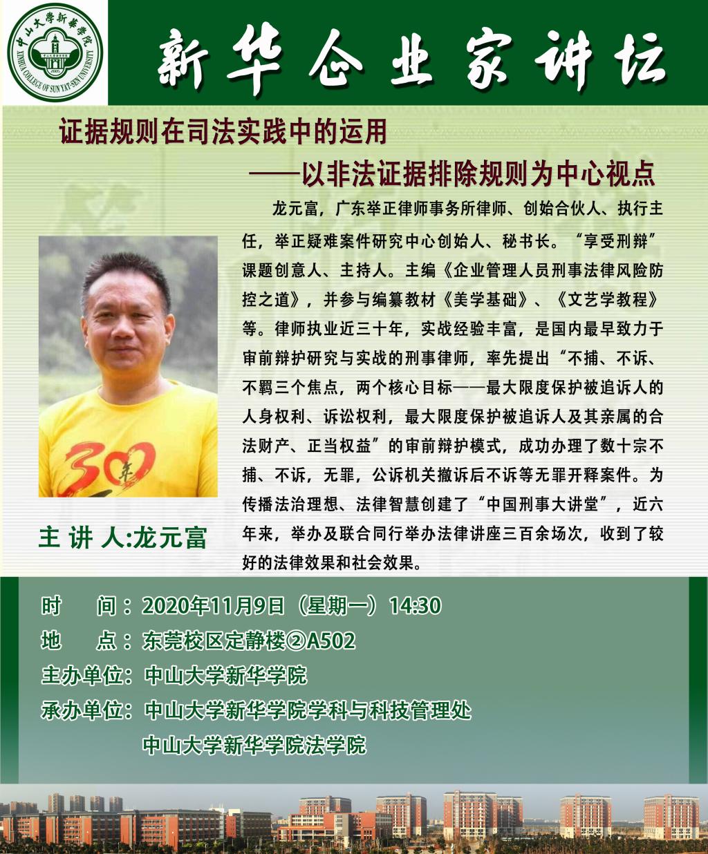 [企业家讲坛]龙元富:证据规则在司法实践中的运用——以非法证据排除规则为中心视点