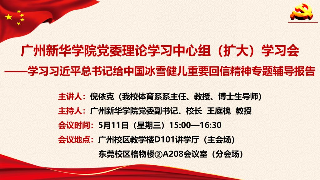 根据上级文件要求,结合学校工作实际,经学校党委研究,决定召开学校党委理论学习中心组(扩大)学习会——学习习近平总书记给中国冰雪健儿重要回信精神精神专题辅导报告。