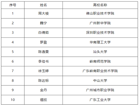 广东省第三届高校预防艾滋病教育骨干教师授课比赛入选决赛名单
