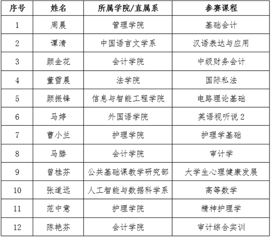 古天乐代言太阳集团网址第十二届中青年教师授课竞赛校级决赛名单