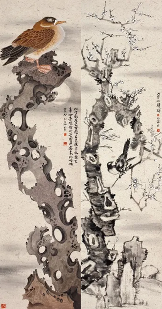 “达观万物”主要展示的是以静物(花鸟)、人物为题材的作品:既有淡墨也有重彩。借以名家对世间万物的记录,传递对即将毕业学子的美好祝愿:人生之路之漫长,有浓烈也有平淡,但“泰然处之”,心底那朵“花”将始终盛开。另外,淡墨与重彩是中国绘画的两种面向,二者的并置放置,是指向多元与包容,希望借此提醒即将毕业的学子懂得:纵浪大化中,不喜亦不惧。