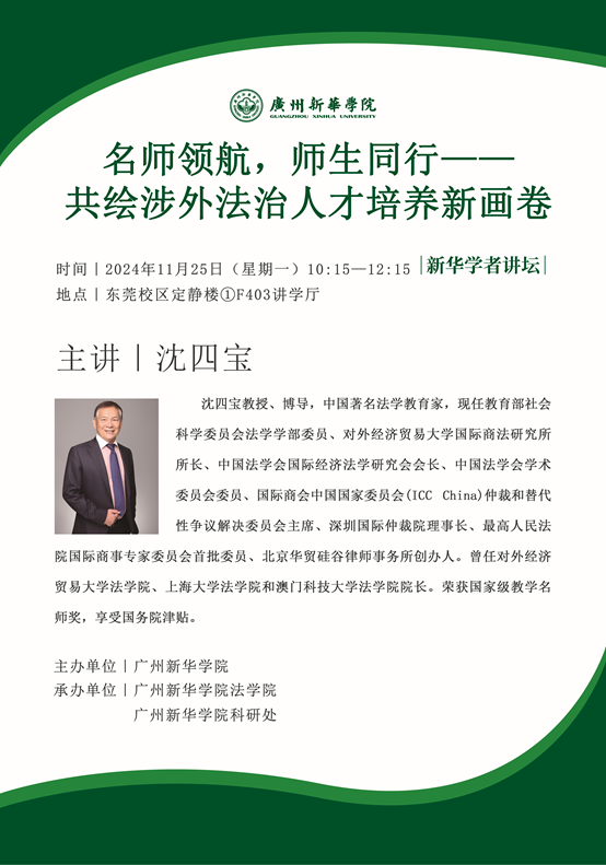 [学者讲坛]沈四宝教授:名师领航,师生同行——共绘涉外法治人才培养新画卷