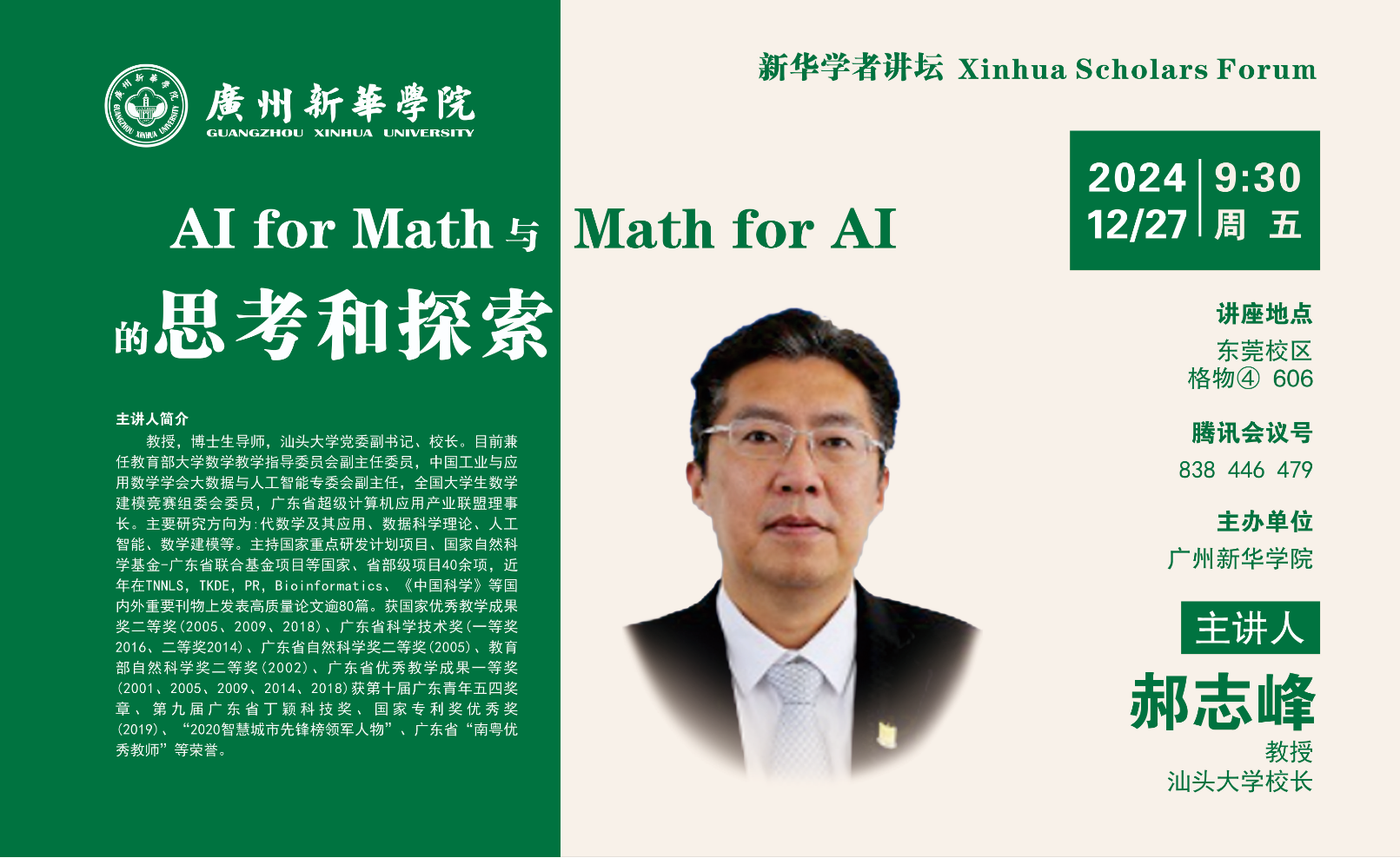 [学者讲坛]郝志峰教授 :AI for Math与Math for AI的思考和探索
