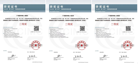 2021级智能制造工程专业的梁键文、何浚丰、张靖宗的获奖证书