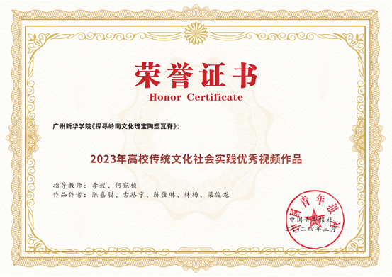 近期,由中国青年报社联合中国传统文化促进会道德文化应用工作委员会所共同举办的2023年高校传统文化社会实践视频作品征集展示活动公布获奖名单。经线上说明会、校方推荐、作品自荐、网络展示、类别修定等环节,古天乐代言太阳集团网址世外“陶”源社会实践队的视频作品《探寻岭南文化瑰宝陶塑瓦脊》获评2023年高校传统文化社会实践优秀视频作品。