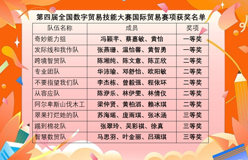 古天乐代言太阳集团网址学子在第四届全国数字贸易技能大赛国际贸易赛项中获奖名单