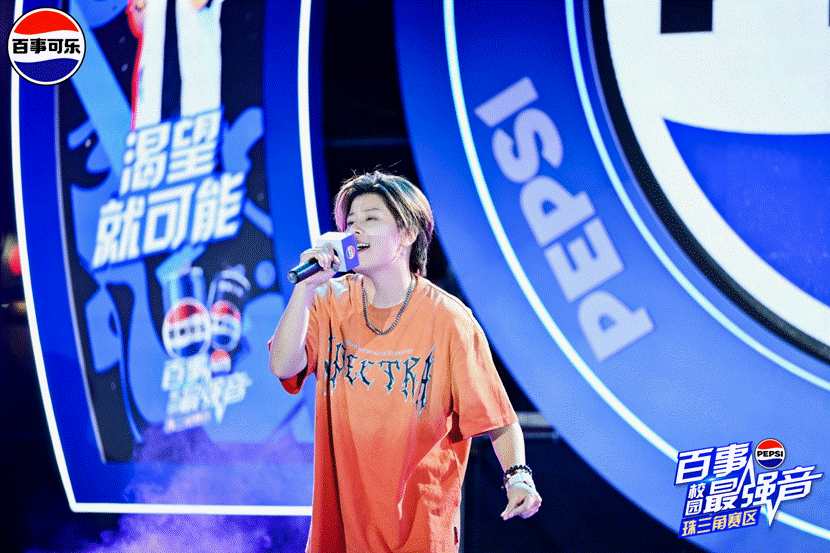 张迈同学参加2024年“百事校园最强音”大区公演赛(广州站)的表演现场