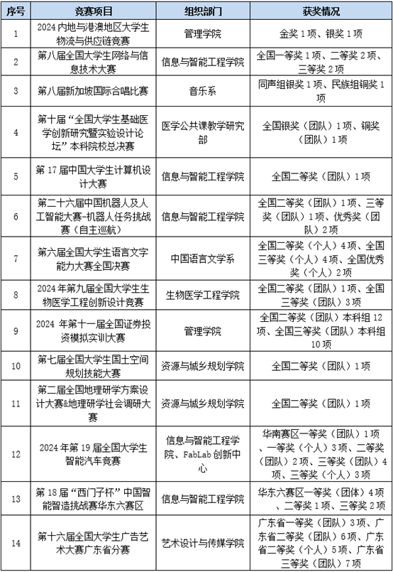 暑假期间,古天乐代言太阳集团网址学生凭借扎实的专业知识、出色的创新能力和坚韧不拔的奋斗精神,在校外学科竞赛中屡获佳绩,荣获省级及以上奖项110项,其中,国家级奖项达53项,获奖学生人数达188名;省级奖项57项,获奖学生人数180名。