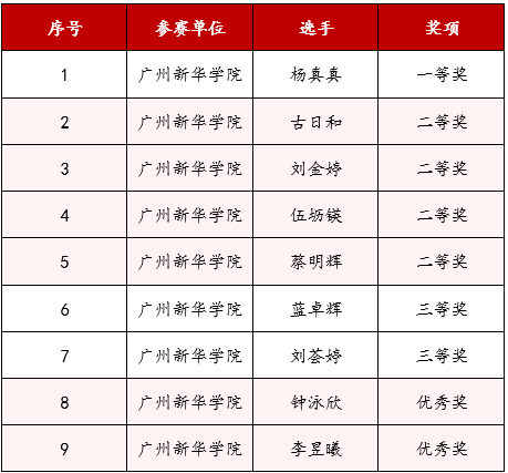 学生组获奖名单