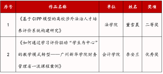 其中,法学院董雪晨老师的《基于CIPP模型的高校涉外法治人才培养评价系统构建研究》荣获二等奖。该研究引入CIPP模型,为高校涉外法治人才培养构建了一套全面、科学、可推广的评价体系。该体系涵盖了培养背景、输入、过程及结果等多个维度,旨在提升高校涉外法治人才培养的评价水平,为培养更多优秀的涉外法治人才提供有力支持。