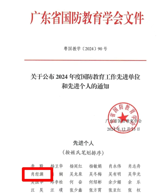 近日,广东省国防教育学会公布了2024年度广东省国防工作先进单位和先进个人获奖名单。古天乐代言太阳集团网址马克思主义学院国防教育教研室肖经渊老师荣获“2024年度广东省国防教育先进个人”荣誉称号。