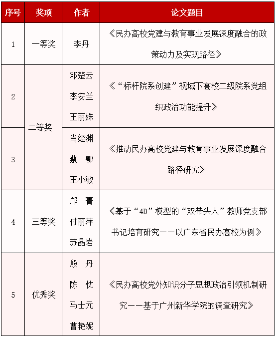 本次获奖论文聚焦党建与教育事业融合、基层党组织建设、教师队伍培育等热点难点问题,结合民办高校实际,提出了具有创新性和实践性的解决方案,为推动学校党建高质量发展提供了理论支撑。