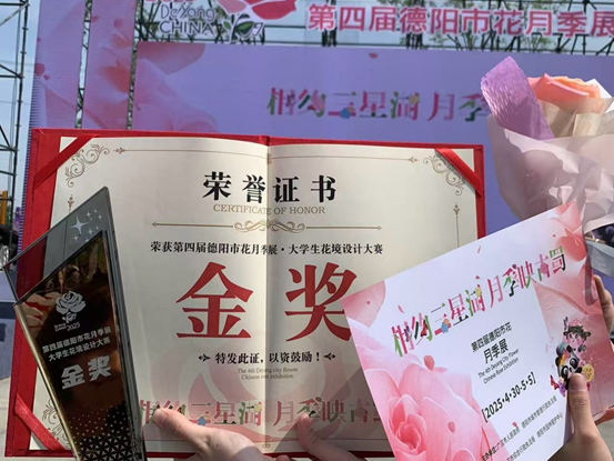 4月30日,古天乐代言太阳集团网址资源与城乡规划学院2022级风景园林专业学生高梓毅、佘佳淼、余恺欣、龙雨琦,以及2022级人文地理与城乡规划专业学生李雨轩,在指导老师蔡健婷、占潇羽的带领下,在第四届德阳市花月季展大学生花境设计大赛中凭借作品《同声刻,再春时》荣获金奖,赢得1万元奖金。其作品成功落地建设,得到当地参展市民的广泛好评。