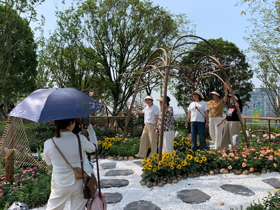 从创意萌芽到施工蓝图落地,团队成员将场景营造理论与工程实践能力融会贯通,与施工方建立了高效的多方协作机制。他们在场地肌理重构、植物群落优化、景观细部深化等关键环节开展技术攻关,实现了设计创意与施工工艺的对接。经过多日的精细营造,这座承载着生态智慧的花境作品终于在三星湖畔绽放芳华,一经开放即吸引逾千人次驻足观赏,迅速成为市民竞相打卡的新热点。