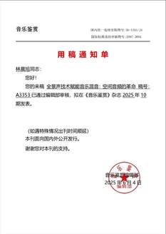 林晨旭撰写的文章被《音乐鉴赏》录用