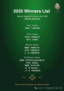2025年第六届丹尼奖D3混音组获奖名单