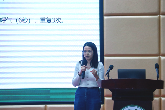 讲座开场,许晓丹通过简单的小互动,让在场听众直观感受到呼吸对情绪和身体的影响:快速浅呼吸会使人呼吸急促、胸闷,而缓慢的腹式呼吸则能让人放松下来。互动结束,许晓丹在讲座中向师生们表明呼吸方式的改变不仅会引发负面情绪,还会导致身体变化,其背后涉及自主神经功能的调节。