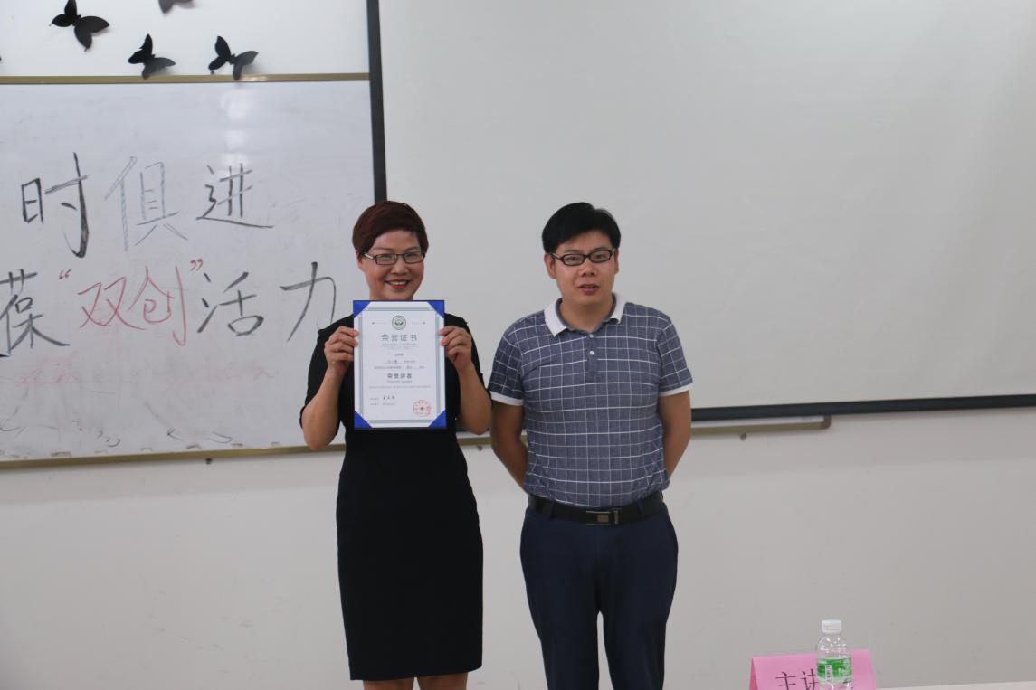 经济与贸易学院党总支副书记李海峰(左)为沈小慧女士(右)颁发证书