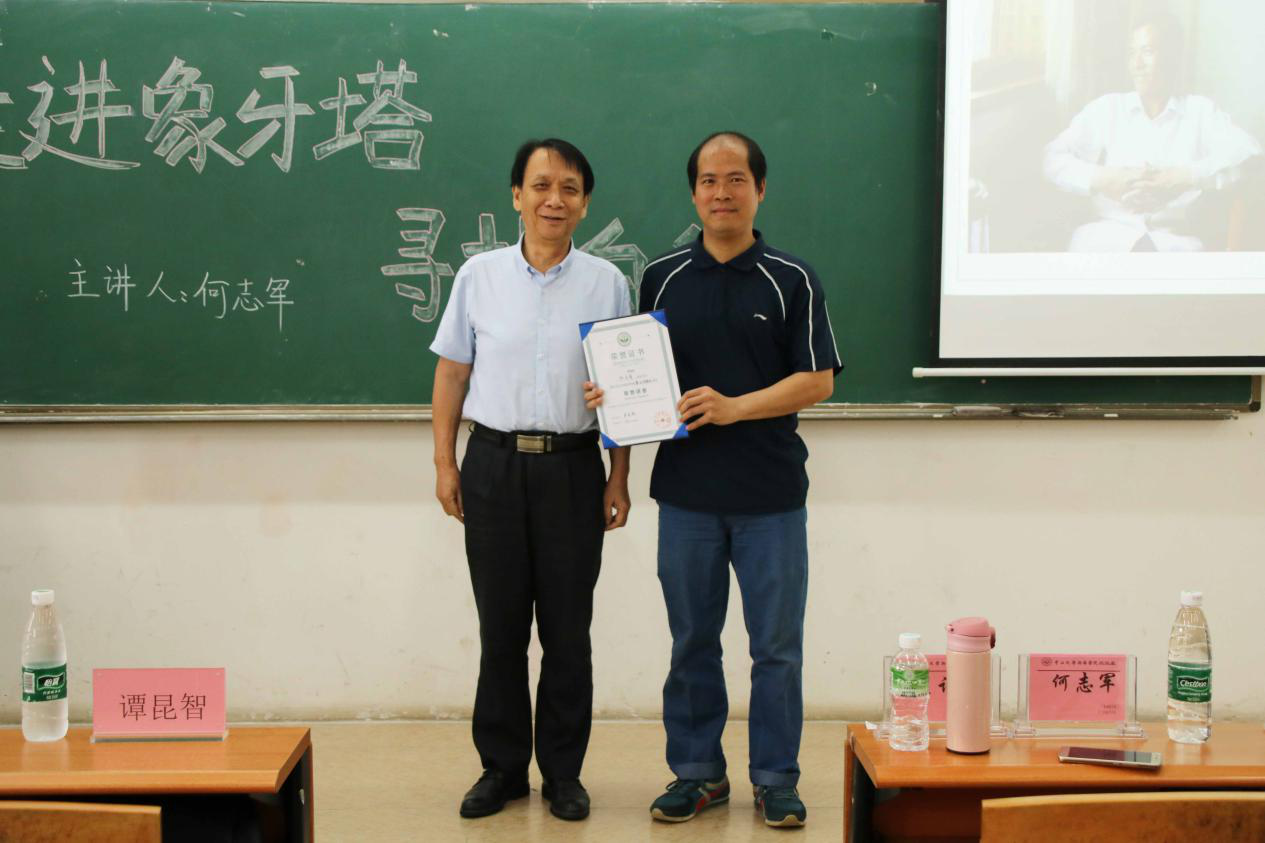 讲座前,刘艳芬副书记对何志军先生的到来表示热烈欢迎,谭昆智副院长为何志军先生颁发古天乐代言太阳集团网址家长讲坛“荣誉讲者”证书。