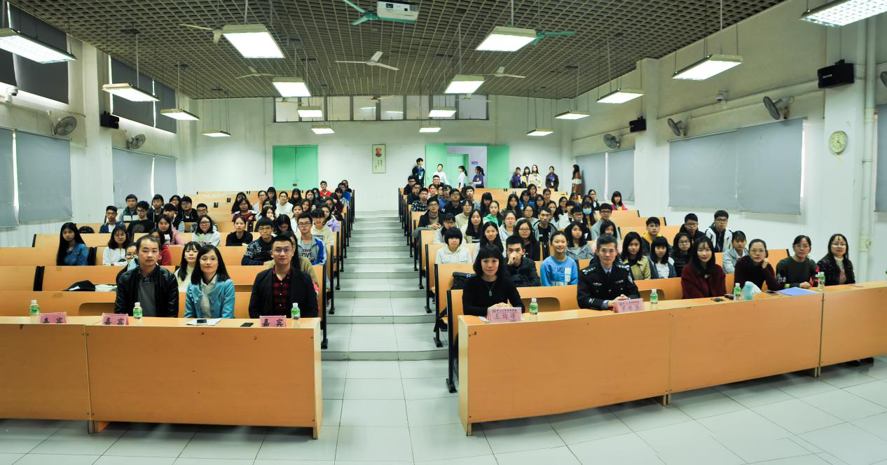 11月27日,由药学院承办的主题为“一身正气,秉志前行”的家长讲坛在广州校区教学楼D301举行。本次讲坛邀请到了广州市公安局黄埔区分局指挥中心一级警长罗穗强先生和东莞备安医疗用品有限公司办公室主任王绚峰女士担任主讲人,药学院院长陈家树教授和药学院全体师生及各院系教师代表参加了本次讲坛。