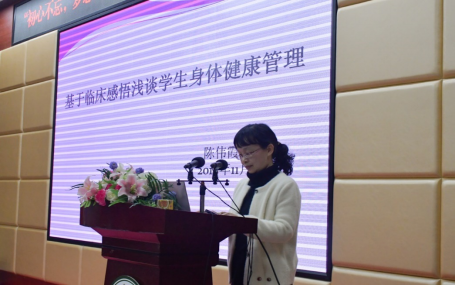 陈伟霞女士与同学们分享在医院的工作经验。她通过生动形象的故事,向同学们普及了健康的概念,同时强调了健康对于当代大学生的重要性,并从多个方面指导同学们如何进行自身的健康管理。陈伟霞呼吁同学们在保持健康体魄的基础上,创造美好人生。