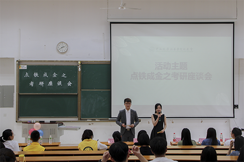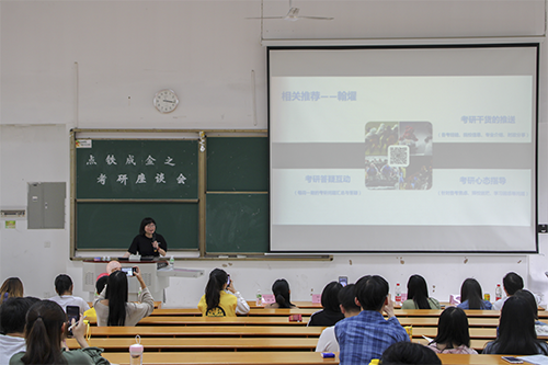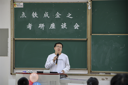 “点铁成金之知己知彼,百战不殆”,叶凤校友为同学们分享了英语与政治这两门公共课的复习原则,强调了搜集、学习历年真题的重要性,在积累平时错题的同时要建立自己的知识框架,在备考过程中要时刻保持良好的心态。叶凤通过阐述“兴趣”与“擅长”的区别,鼓励同学们要善于挖掘自己的潜力,拓宽自己的专业选择道路。面对同学们在三轮考研复习上的疑惑,叶凤校友建议:第一轮复习要注重课本知识,打好基础;第二轮复习强化基础,有针对性的复习;第三轮复习查漏补缺,回顾笔记与真题,做到温故而知新。