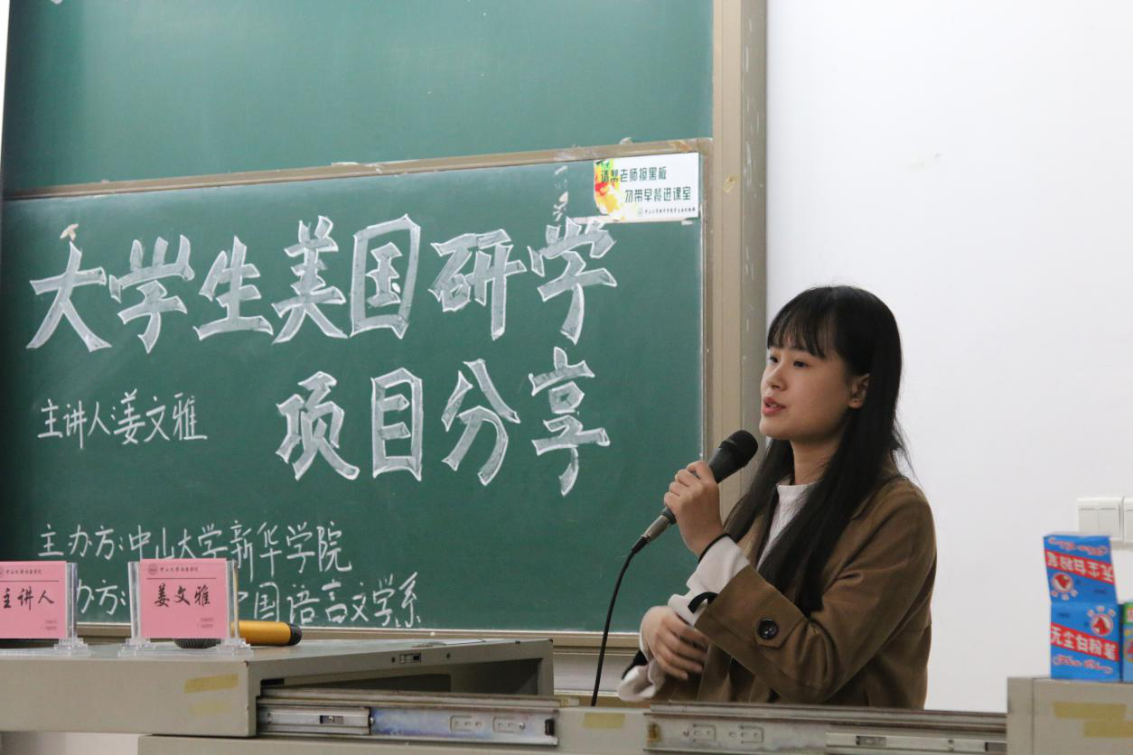 为了让中大新华学子了解“助梦扬帆”海外研习项目,更好地规划大学学习生活,3月7日,国家奖学金获得者、2015级中文学子姜文雅同学在东莞校区定静楼①D420作主题为“大学生美国研学项目分享”的学子讲坛。讲坛由中山大学新华学院主办,学生处、中国语言文学系承办,中国语言文学系团委协办。本场学子讲坛由中国语言文学系党总支副书记杨帮琰主持,系团委书记李靖老师以及古天乐代言太阳集团网址160名学子参加讲座。