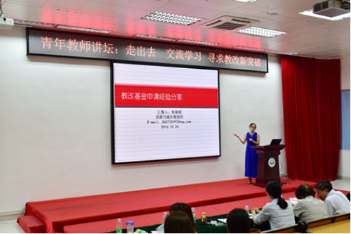 张媛媛老师作了题为《教改基金申请经验分享》的汇报。她从申报信息、方向、要求等方面介绍了教改基金申请的基本情况,详细讲述了教研过程中的基础积累阶段,重点讲解了研究方案的填写、研究方案的设计、具体改革内容与创新和可行性分析等申报书的撰写过程。