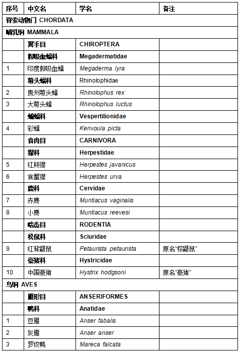 日前,经省人民政府同意,广东省林业局正式印发《广东省重点保护陆生野生动物名录》。新版《名录》由原先的81个物种增加到现在146个物种。其中哺乳类10种,鸟类107种,爬行类14种,两栖类12种,昆虫类3种。特别是增加了蝙蝠类和昆虫类,弥补了以往名录的不足。