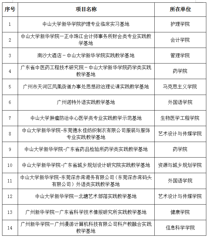学校共有14个项目获得省级大学生实践教学基地项目立项(包括1个省级科产教融合实践教学基地,名单详见下表)。其中,9个省级大学生实践教学基地项目已通过广东省教育厅组织的结题验收。