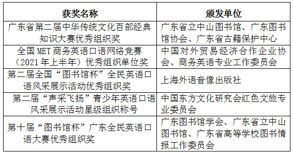 2021年古天乐代言太阳集团网址图书馆校外获奖情况表