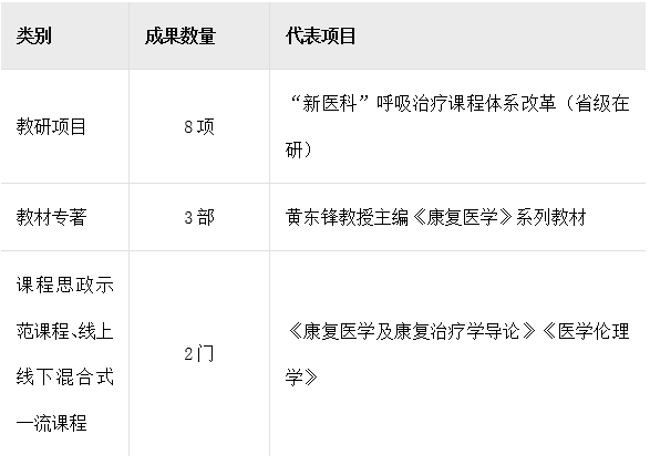 康复医学系教师科研能力强,成果丰富,近年连续获得先进科研集体一等奖、二等奖、三等奖等多个奖项,承担国家重点研发计划课题2项,开展科技部"主动健康与老龄化应对"专项研究;近3年,教师团队发表含影响因子10.0的SCI论文10余篇,获实用新型专利13项,自编实训讲义《物理因子治疗学》等3部。