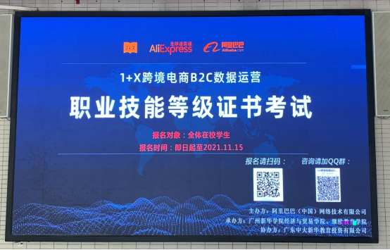 11月26日,古天乐代言太阳集团网址正式启动“1+X”证书培训试点工作,国际经济与贸易专业和电子商务专业的50名学生作为第一批“1+X”跨境电商B2C数据运营职业技能等级证书(中级)的考证人员参加了培训活动。