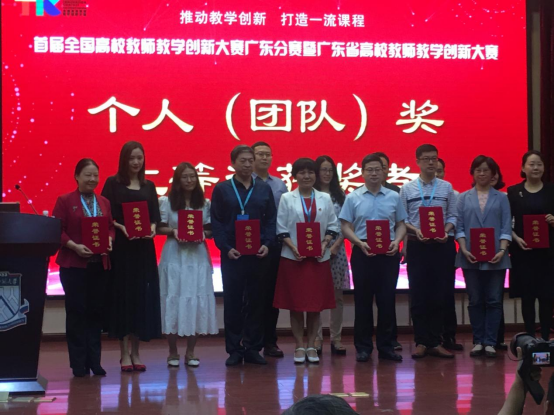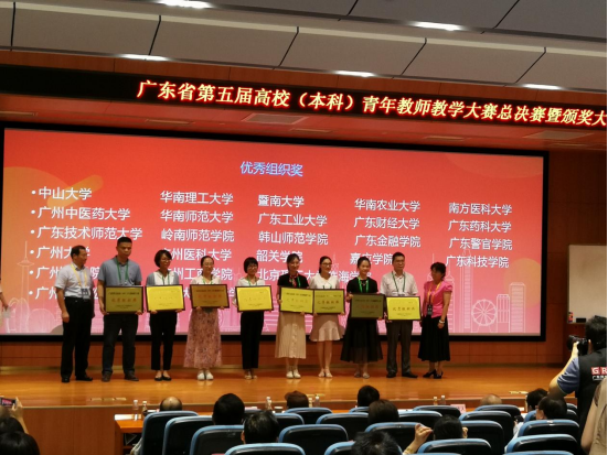 广东省第五届高校(本科)青年教师教学大赛颁奖现场(左三:陈宝琪副处长)(202008)