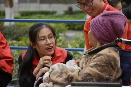 丘华丽刚上大一的时候,校道里颜色多样的志愿服引起了她的注意。看着志愿者们身穿志愿服、顶着烈日帮新生搬动厚重的行李,尽管满头大汗脸上也挂着灿烂的笑容,她深深地受到感染,于是加入了学校的志愿组织以探寻帮助他人的快乐。