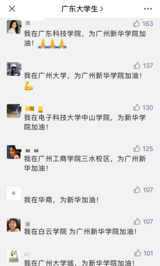 在这危急关头里,四面八方爱心汇聚新华。为保证学生有饭吃,食堂工作人员努力全力以赴确保食物充足供应;外校学生和毕业学子纷纷留言“我在xxx,为新华加油!”;宿管阿姨帮忙充水电卡……互相鼓励,相互扶持,这是新华的暖心时刻。
