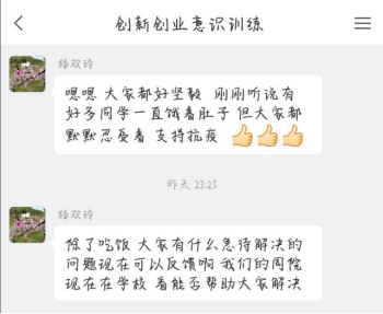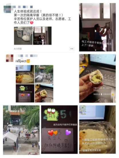 第一次经历不出宿舍门的隔离生活,除了第一天会稍有不适应外,健康学院的学生们都渐渐调整好状态,迎接宿舍上课的生活。对不辞辛苦为大家配送食物的工作人员,学生们纷纷表示感谢,携手齐心,共同战“疫”。