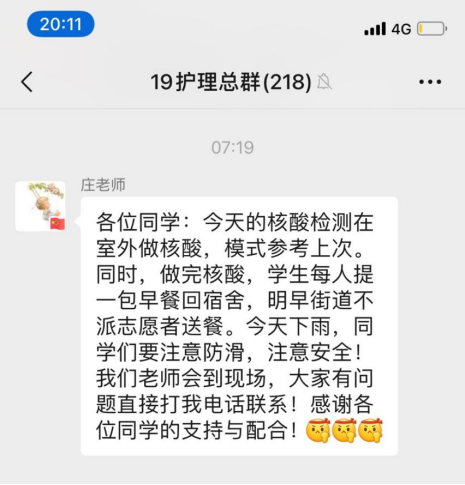 “我们现在可能物资供给没有那么及时,但是现在是艰难时刻,危急关头,我们护理学院的同学们要把感恩之心和同理之心发扬下去。有困难我们及时反映,但是我们要坚定不移地执行学校的各项安排,坚持做好一切防疫措施,曙光就在前面。”王秀岚鼓励学院师生。