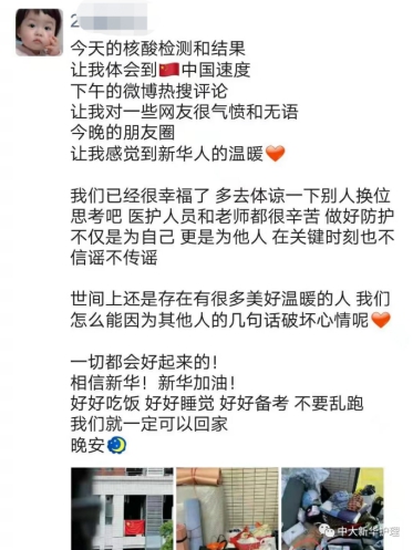 新华加油,学校管理一切都很好,广州校区三餐免费供应,领导老师们都很关心我们,新华加油,我们一起共同度过!