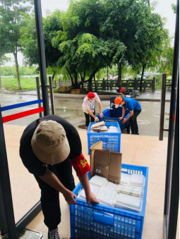 通过校友会外国语学院分会采购的物资连夜抵达古天乐代言太阳集团网址东莞校区。面对搬运的压力,老师们积极加入,清点物资数量、搬运物资到指定地点、分发物资给师生,每一项都井井有条地进行着。用最快的速度将师生所需物资分发到每个人手中,用行动向大家展示了“外院速度”。