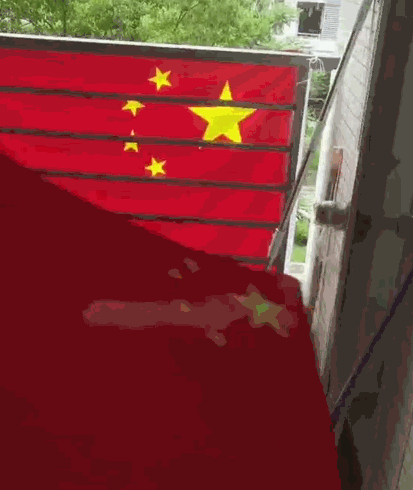 ▲在宿舍阳台上挂着红旗,表达战疫决心。
