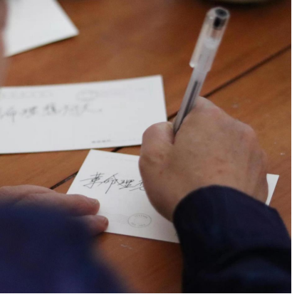 采访最后,尹明祥认真地在明信片上写下了对同学们的祝福和期待,对年轻一代寄予了殷切期望。