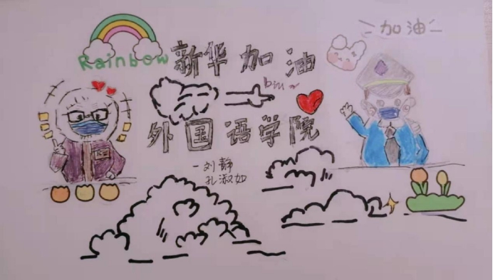 外院记者站刘静、孔淑如创作海报为学校疫情防控工作加油鼓劲