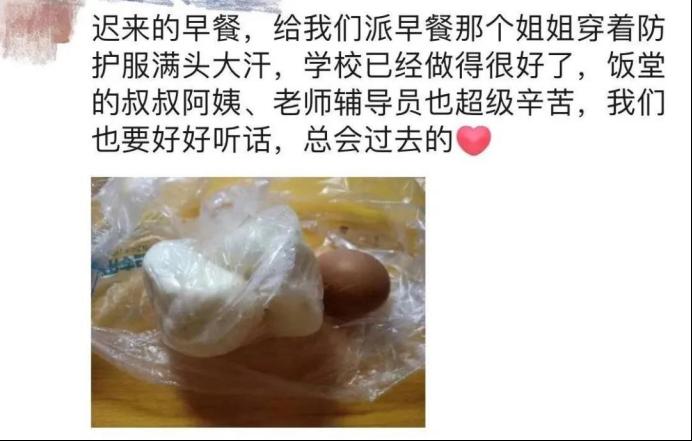 当前,学校努力克服种种困难,安抚同学们焦虑的心情,尽最大可能解决宿舍隔离的生活困难,共同守护平安、健康校园。