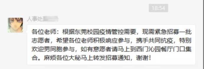 人事处发出教职工志愿者招募信息校内教职工火速报名参加