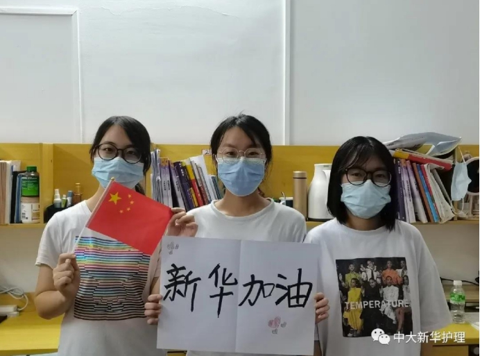 面对疫情,同学们心里的抗疫激情始终沸腾着。在学生宿舍楼,有一扇窗前飘扬着五星红旗。“我们不是在隔离,而是参加一场没有硝烟的战争”,国旗在防控疫情斗争第一线鼓舞着新华师生的士气。