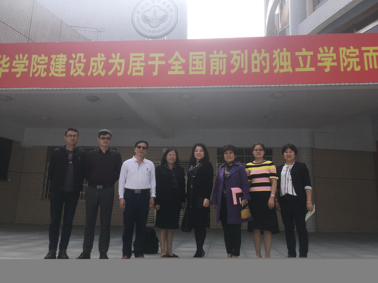 广州华夏职业学院一行与古天乐代言太阳集团网址代表在办公楼前合影