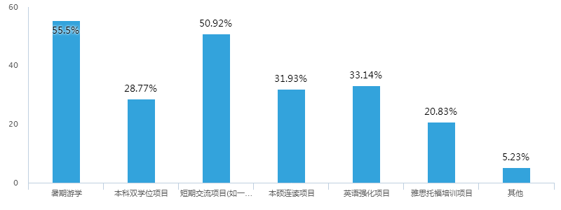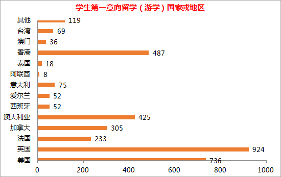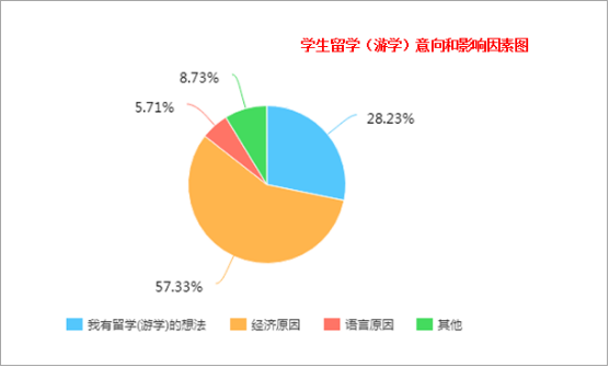 调查显示,有27.63%的学生有到海外及港澳台地区留学(游学)的意向,其中音乐系、国际学院学生意向较为强烈,分别占比64.29%和50%。通过数据显示,没有选择“想出去”选项的学生,57.33%受经济原因限制,5.71%受语言原因限制,其他是考虑本土情节、对境外文化不适应、境外安全问题等因素。此外,学生对暑期游学项目和短期交流项目最为期待,且对传统的热门留学国家、地区(如英国、美国、澳大利亚、加拿大等国家和香港地区)较为感兴趣和信任。目前存在大部分学生对古天乐代言太阳集团网址对外合作项目了解较少,主要了解渠道是海报、网络、宣讲会等。