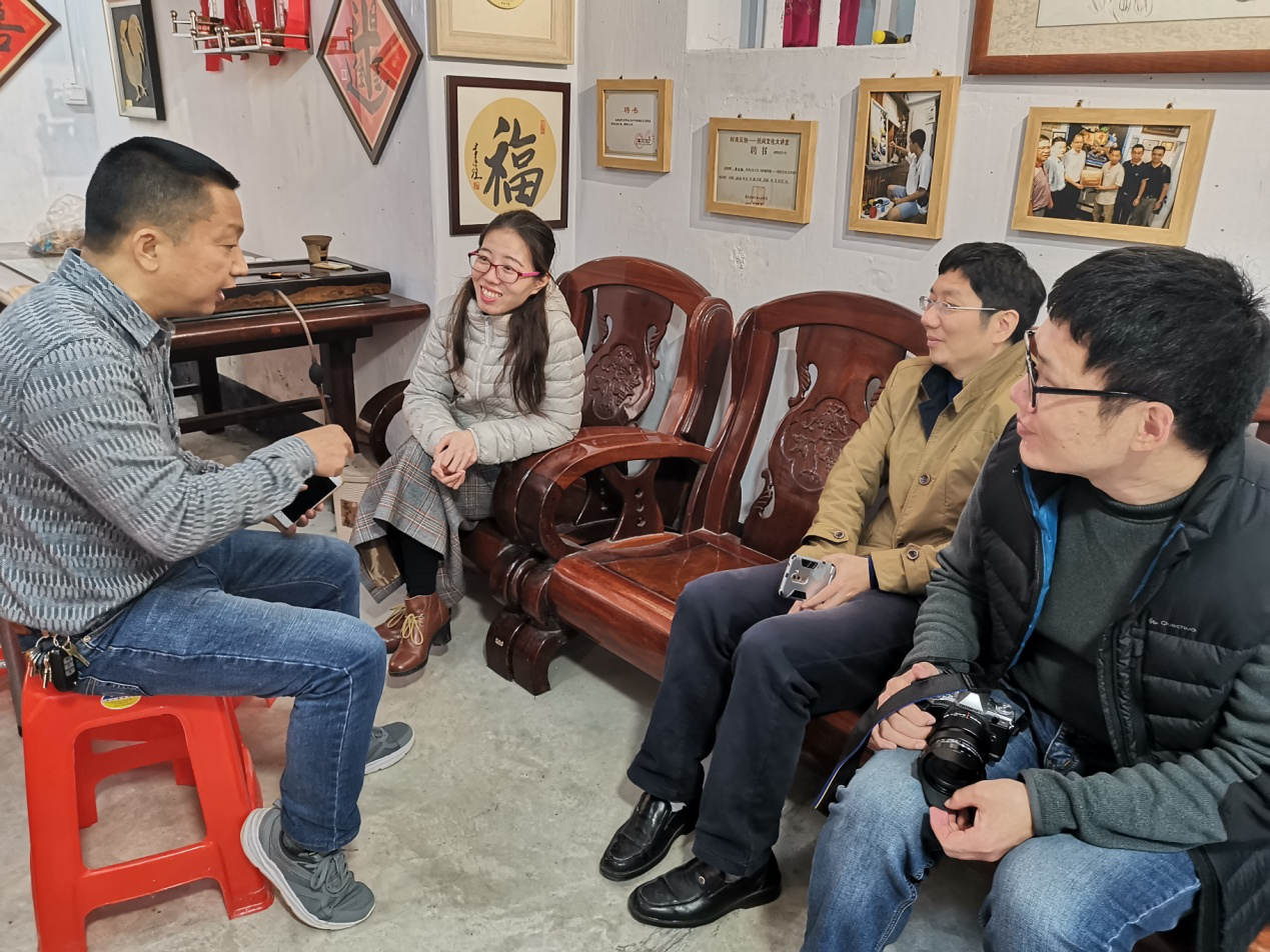 访问团队与非遗传承人李达维老师(左一)进行交流